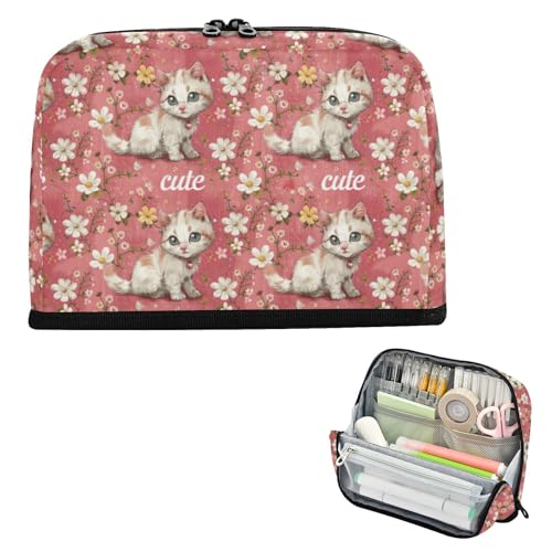 EtherSpher Cute Peach Cat Flower Pencil Pen Case Large Capacity Cosmetic Bag Slots Stationery Bag for Girls Grade School Supplies bolso para herramientas