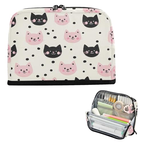 EtherSpher Cute Animal Cat Black Peach Cream Pencil Storage Case Large Capacity Pen Bag With Slot Stationery Organizer for Girls High School Supplies cartucheras escolares para lapices