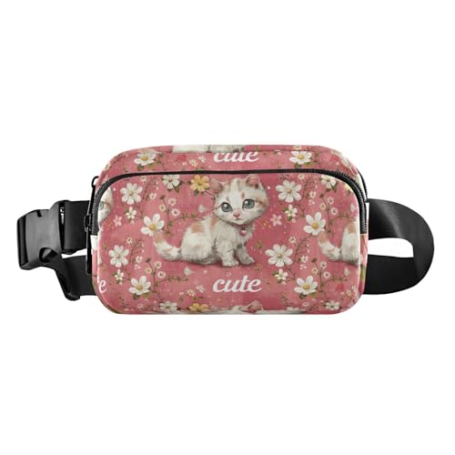 Cute Peach Cat Flower Fashion Waist Bag Fanny Pack for Women Men Mini Sling Chest Bag with Adjustable Strap for Travel Vacation Running