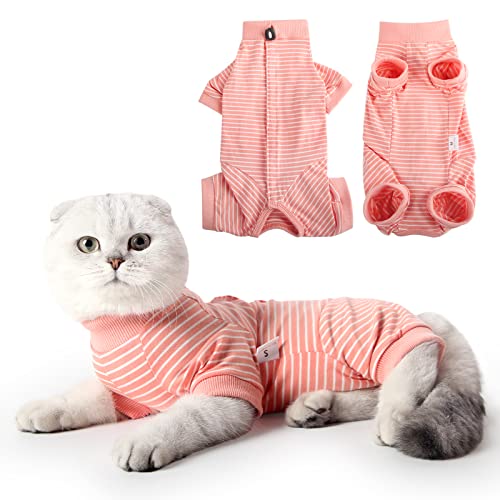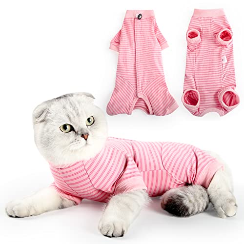 HEYWEAN Cat Recovery Suit Cats Vest Bodysuit After Surgery Stripes Long Sleeve Cat Onesies for Kitten Medical Care Cone Collar Alternatives Pet Surgical Shirt Cats Clothing Pajama Suit