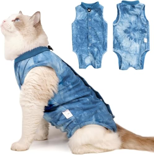 Avont Cat Recovery Suit Post Surgery, Elizabethan Collar & Cone Alternative, Kitten Onesie Pet Surgical Spay Shirt for Abdominal Wounds or Skin Diseases -Blue(L)