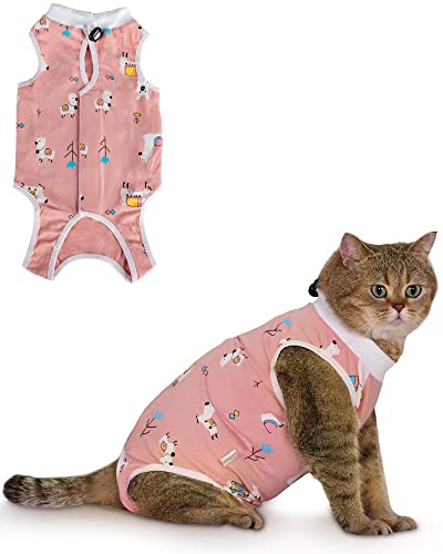 Avont Cat Recovery Suit Post Surgery, Elizabethan Collar & Cone Alternative, Kitten Onesie Pet Surgical Spay Shirt for Abdominal Wounds or Skin Diseases -Pink(M)