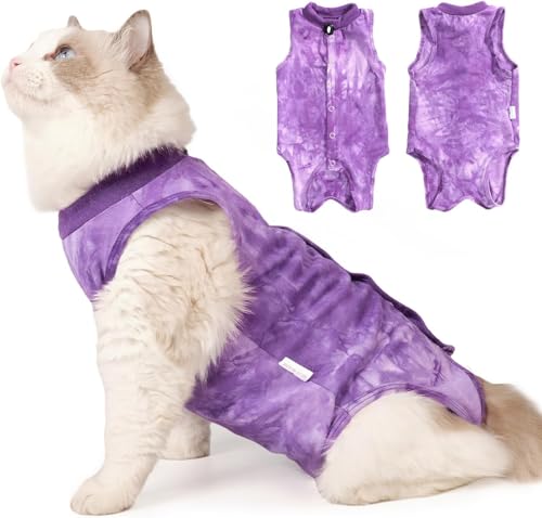 Avont Cat Recovery Suit Post Surgery, Elizabethan Collar & Cone Alternative, Kitten Onesie Pet Surgical Spay Shirt for Abdominal Wounds or Skin Diseases -Lavender(L)