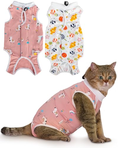 ANWA 2 Pack Cat Recovery Suit - Breathable Cat Onesie for Cats After Surgery Female, Kitten Surgery Recovery Suit Female Abdominal Wounds