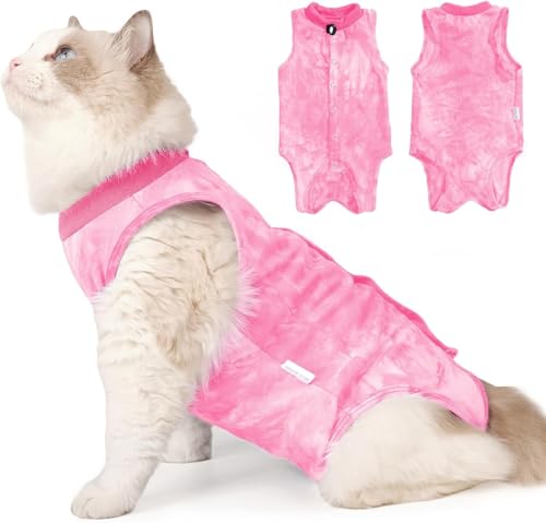 Avont Cat Recovery Suit Post Surgery, Elizabethan Collar & Cone Alternative, Kitten Onesie Pet Surgical Spay Shirt for Abdominal Wounds or Skin Diseases -Tie-dye Pink(M)