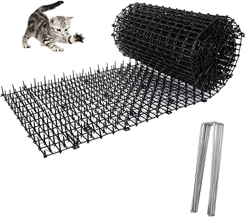 XFLYP Cat Scat Mats, 4mx30cm Prickle Strip Dig Stopper with Deterrent Spikes, Cat Repellent Mat Scat Mats, Anti Cat Dog Deterrent Fox for Garden Fence Can be Cut and Spliced & 16 U-shaped Pegs