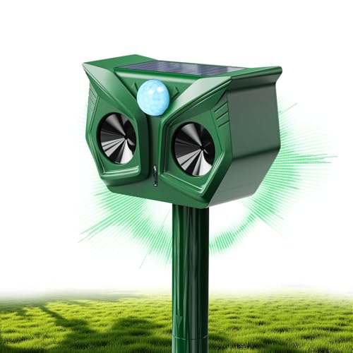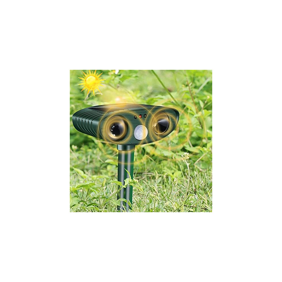 Solar Powered Cat Repellent Ultrasonic, Animal Scarer Repellent Cat Deterrents for Gardens with PIR Motion Sensor, Applies to Repeller Cat, Mole, Squirrel, Raccoon, Skunk, Rabbit, Deer, Rat, Rodent