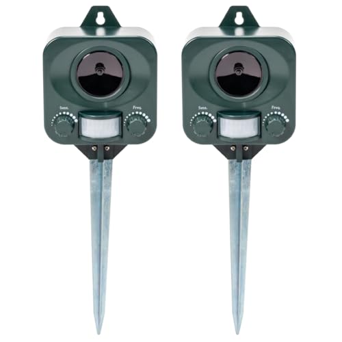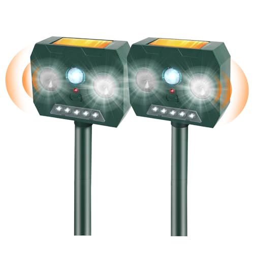 Zucklight Cat Repellent, 2 PCS Solar Powered Animal Scarer, Ultrasonic Fox Repellent, Quick Fix Ultrasonic Cat Scarer with Ground Stake, Waterproof Motion Sensor Led Flashing Light Repellent