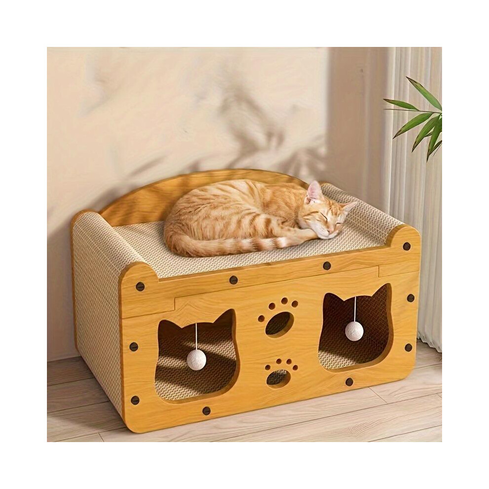 Cat scratch Wooden Cat Lounge Bed with Detachable Cat Scratch Board Corrugated Paper Worn Cat Scraper Claw Grinding Toy L