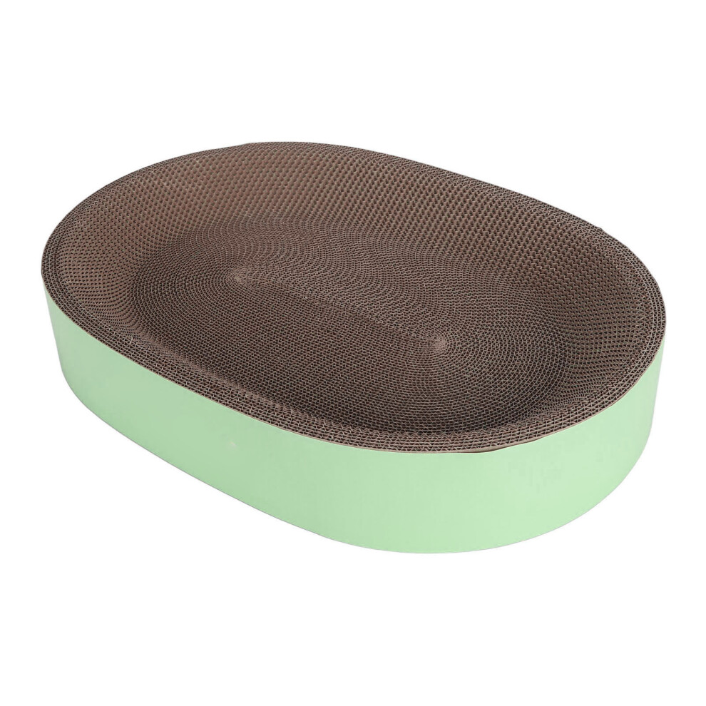 Oval Corrugated Paper Cat Bed & Scratch Board 54x38x9.1cm Green
