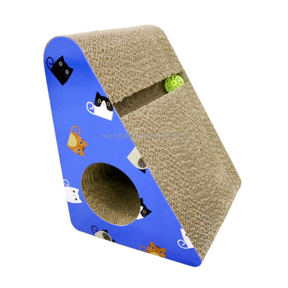 Triangular Wall bell Corrugated Paper Cat Scratch Board Cat Litter Grinding Claw Toy(Blue)