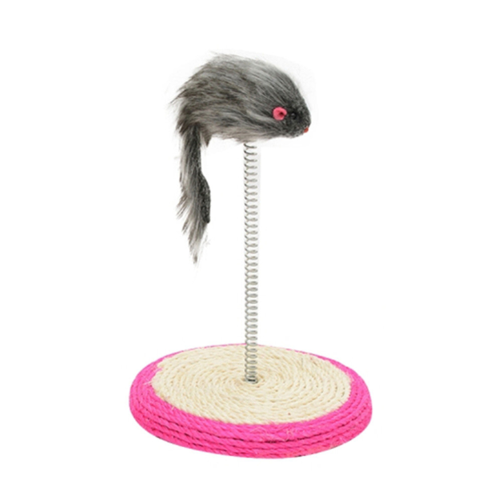 Pet Cat Playing Toys Sisal Spring Seat Cat Scratch Board With Mouse, Board Diameter: 15cm, Random