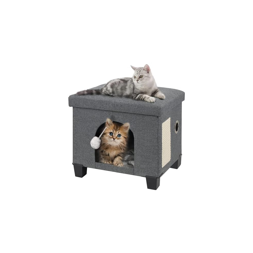 Cat House for Indoor Pets 2 Layer Large cat cave with Scratch Board