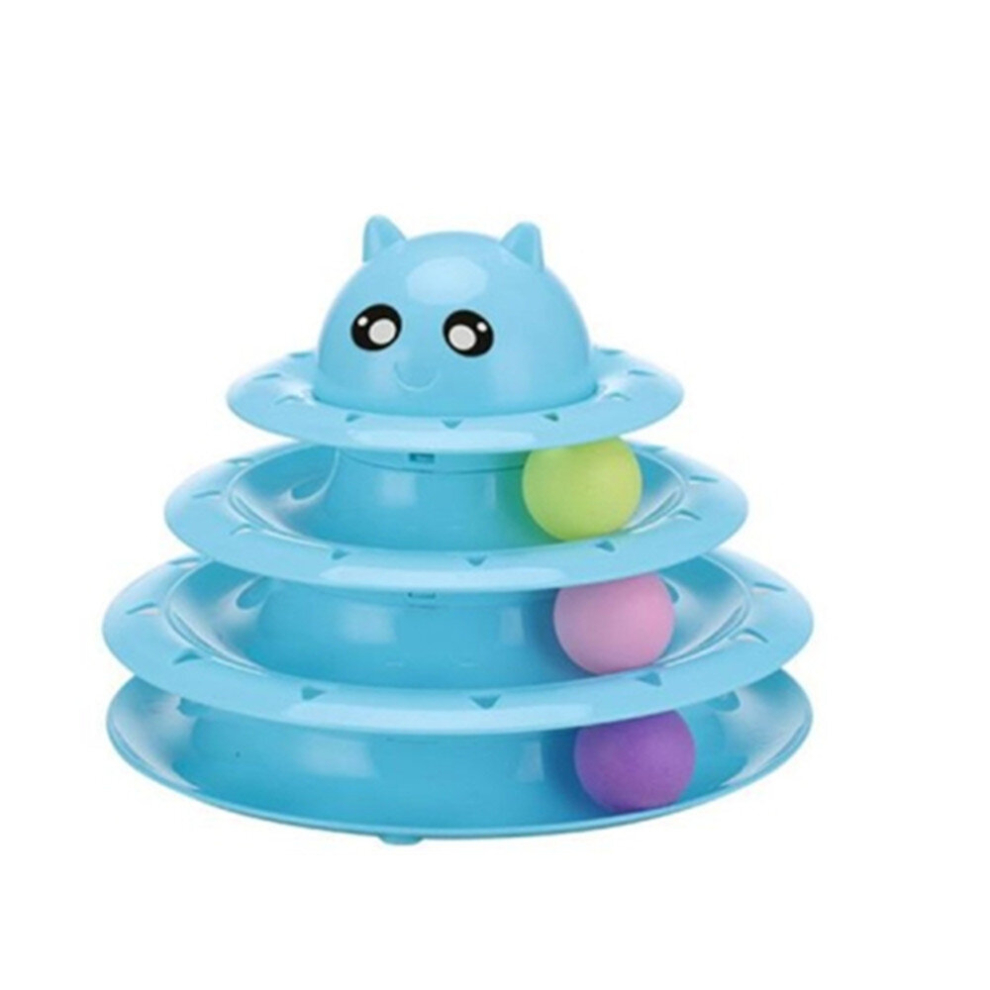 Pet Three-layer Turntable With Ball Cat Fun Toy Cat Scratch Board Pet Claws Supplies(Blue )