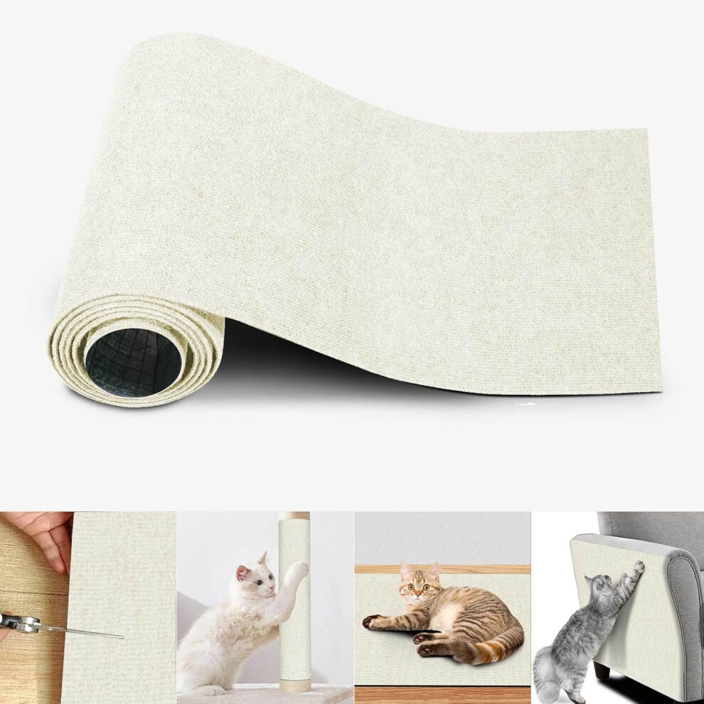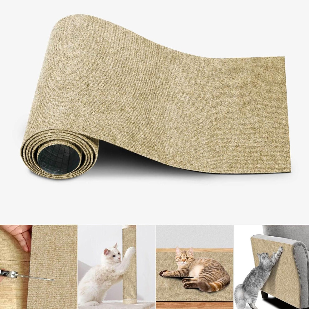 Cat Scratch Furniture Protector Mat, DIY Self-Adhesive Cat Scratch Pad, Khaki Carpet for Cat Trees, Doors, Couches, 15.8 x 39 Inch