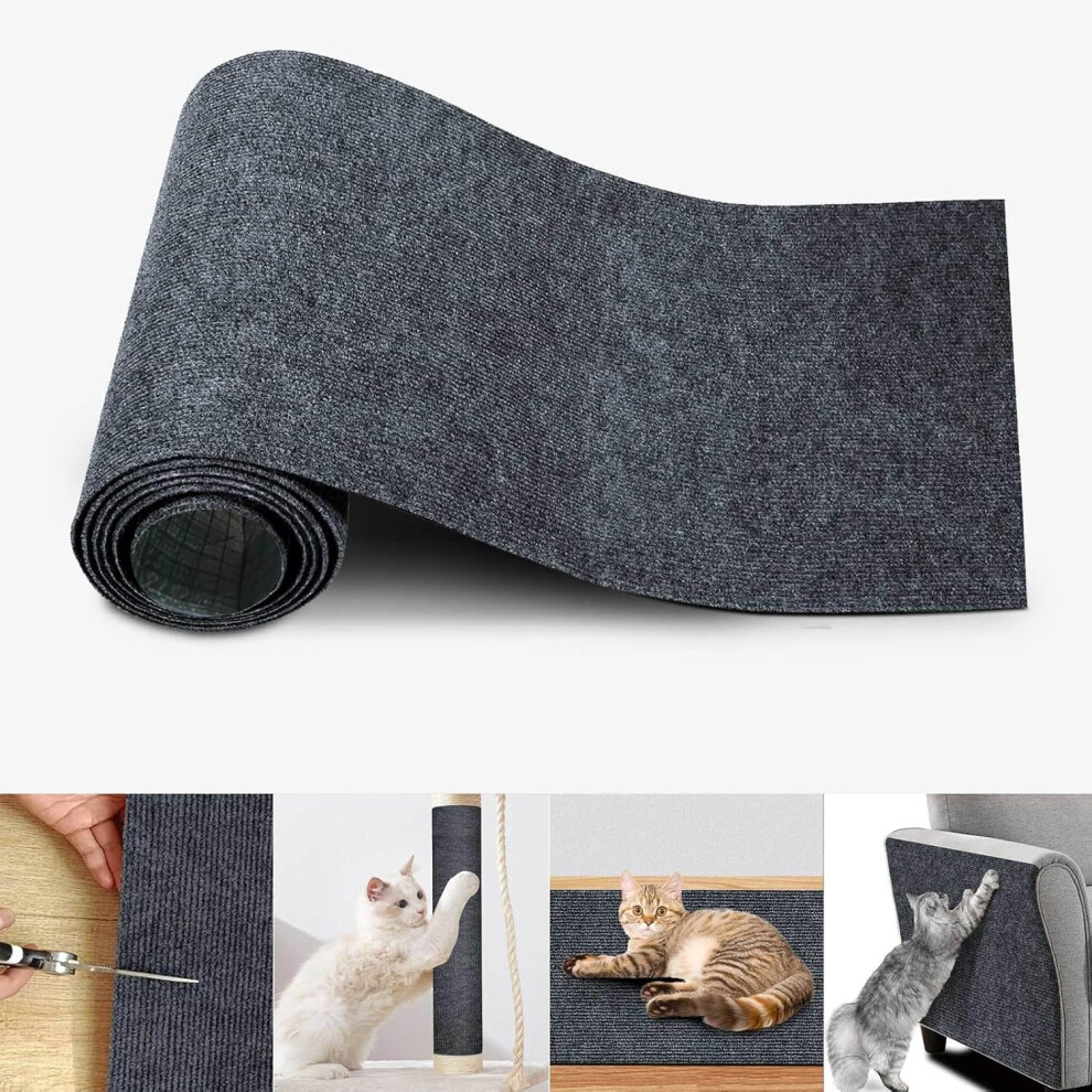 Universal Cat Scratch Protection Mat 40cm x 200cm Dark Gray Self-Adhesive for Doors and Sofas
