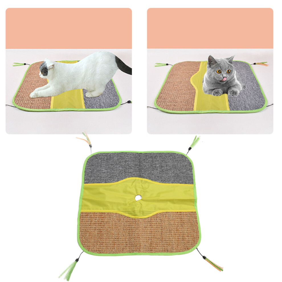 Cat Scratch Play Mat Multifunctional Interesting Sisal Cat Scratching Pad Rug with Strings for Cat Kitten