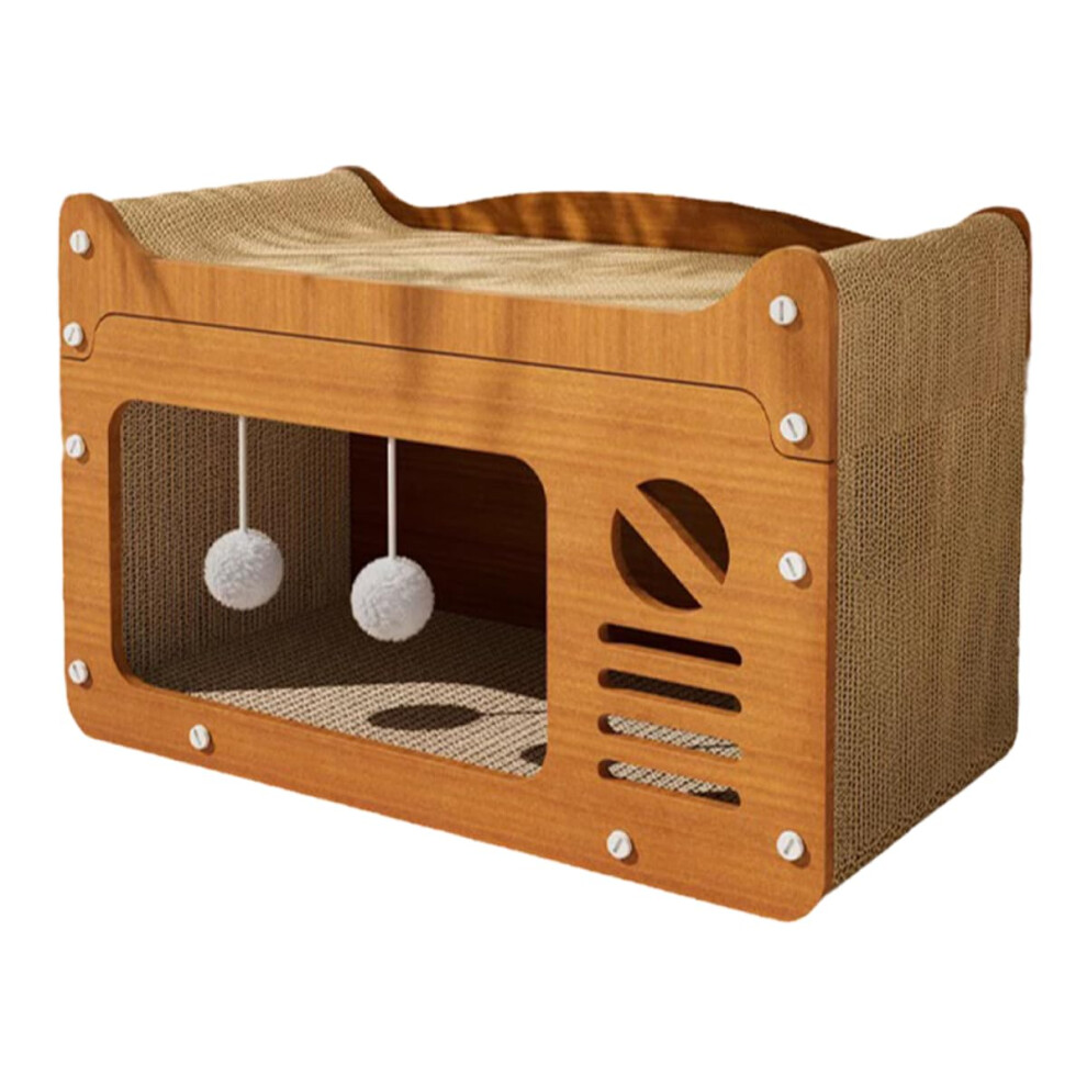 Cat Scratch Post Cardboard House 2 in 1 Scratcher Board with Curved Design and Spring Mouse Toy for Indoor Cats
