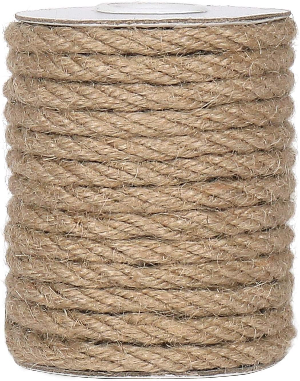 6Mm Jute Rope, 33 Feet Thick Natural Jute Twine String for Cat Scratch Post Rope