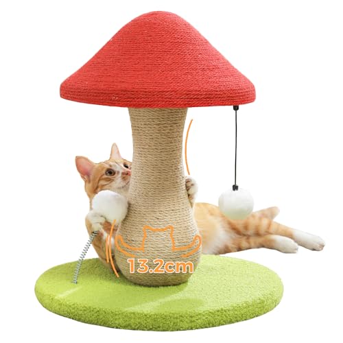PAWZ Road Cute Cat Scratching Post for Indoor Cats, Mushroom Cat Scratcher Scratch Post with 100% Sisal Covered Scratching Post & Pompoms Toy