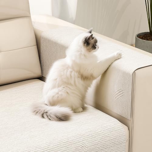Koncey Self-Adhesive Cat Scratching Mat, Sofa Cat Scratch Protector, Multifunctional Wall Padding, DIY Trimmable Wall Corner Protector Pad(White-30 x 100 CM)