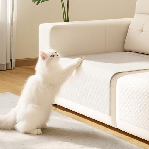 Koncey Self-Adhesive Cat Scratching Mat, Sofa Cat Scratch Protector, Multifunctional Wall Padding, DIY Trimmable Wall Corner Protector Pad(White-60 x 100 CM)