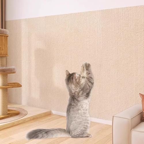 Koncey Cat Scratching Wall Padding Mat, Wall Protector Self-Adhesive, Anti-Scratch Furniture Protectors, DIY Trimmable, Climbing Cat Scratcher for Sofa, Carpet, Bett, Walls, Bed(Khaki-30 x 200 CM)