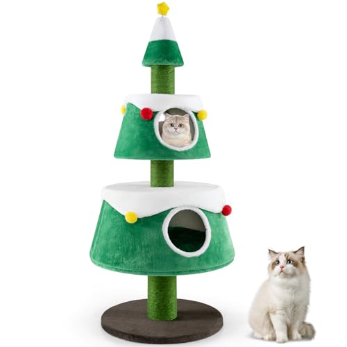 Maxmass Christmas Cat Tree, Kitten Activity Center with Sisal Scratching Post and Washable Mat, Indoor Cats Tower for Bedroom Living Room Pet Store (Green, 70 x 70 x 153 cm)