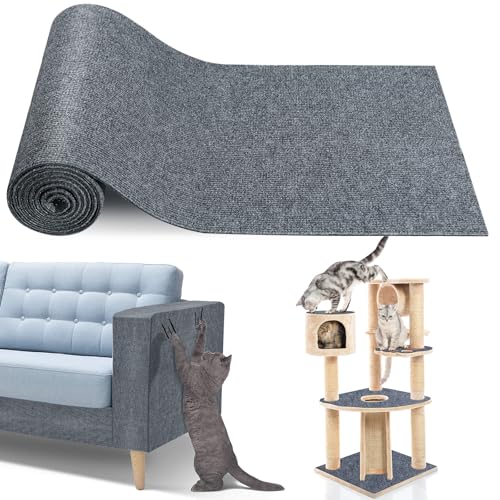 Gimars 40×200cm Thickened Self Adhesive Cat Scratching Mat, DIY Cuttable Climbing Wall Scratch Pad, Anti Scratch Furniture Protector for Sofa, Wall, Floor, Carpet (Grey)