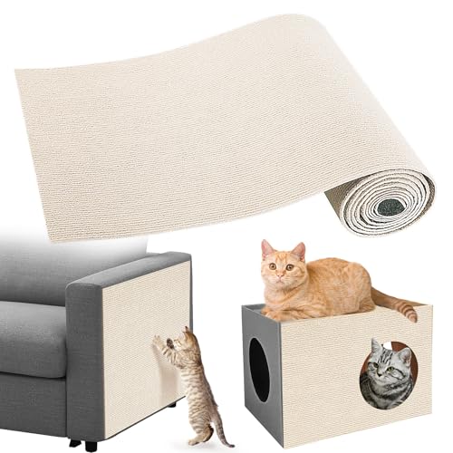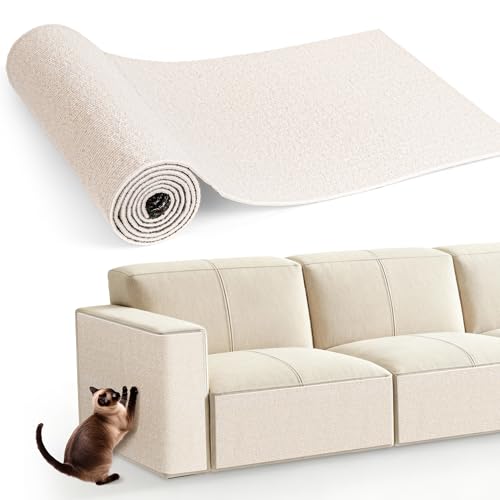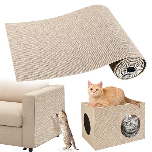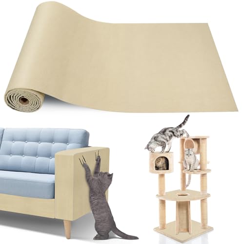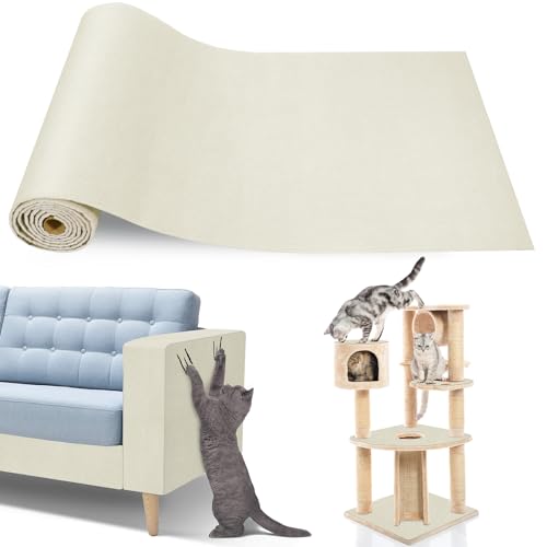 Gimars 40×200cm Thickened Self Adhesive Cat Scratching Mat, DIY Cuttable Climbing Wall Scratch Pad, Anti Scratch Furniture Protector for Sofa, Wall, Floor, Carpet (Beige)