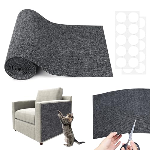 Koncey Self-Adhesive Cat Scratching Mat, Sofa Cat Scratch Protector, Multifunctional Wall Padding, DIY Trimmable Wall Corner Protector Pad(Gray-30 x 100 CM)