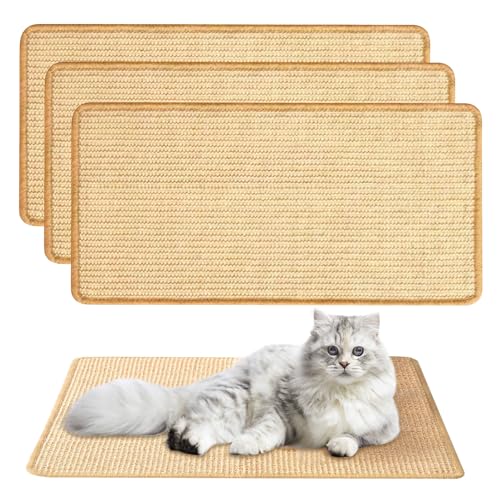 3pk Cat Scratching Mats, 50 x 25 cm Natural Sisal cat Scratch mat, Cat Scratchers for Indoor cats - Protect Carpets and Sofas (Beige)