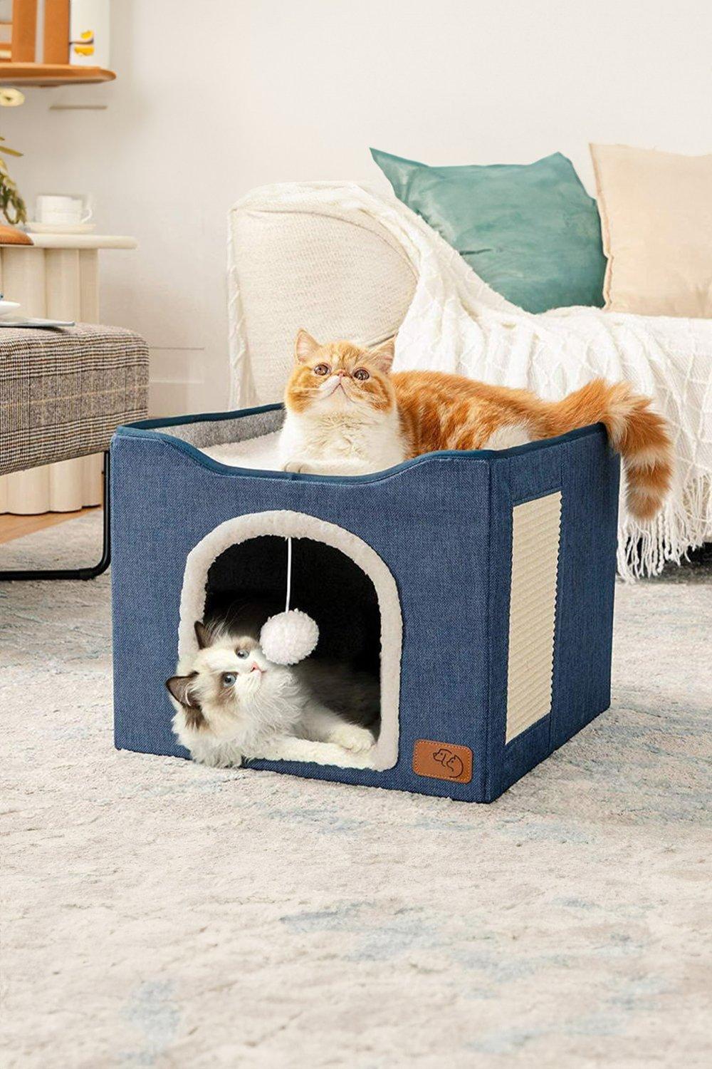 Foldable Multifunctional Cat Bed with Scratching Pad