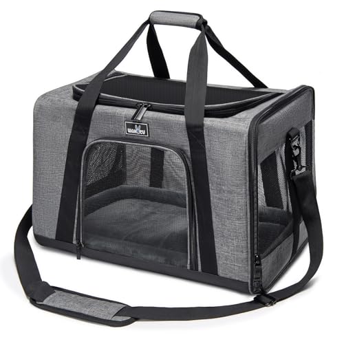 Wakytu Pet Carrier Bag for Small Medium Cats and Dogs, Foldable Cat Travel Carrier Bag, Soft-Sided Dog Carrier with Adequate Ventilation, 3 Entrance,