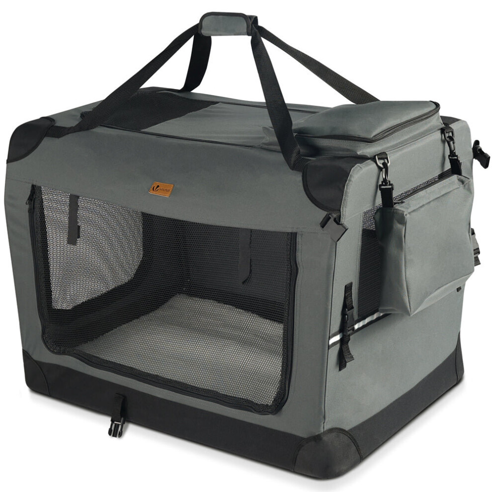VOUNOT Pet Carrier Bag Portable Foldable Dog Cat Travel Carrier Bag, 3 Entry Doors, Breathable Mesh and Padded Handles, XL Grey