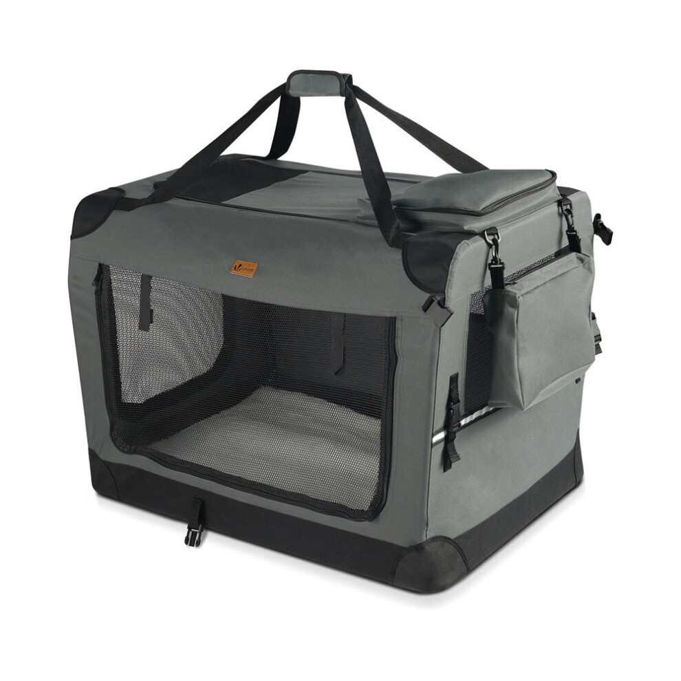 CADOCA® Foldable Dog Crate XXL Large Portable Soft Fabric Pet Carrier for Puppy, Dog, Cat & Kitten Breathable Cat Carrier, Travel Crate for Dog Bed, Car, Home, Vet & Holiday Use Light Grey 90x60x66cm