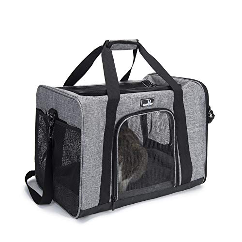 pecute Cat Carrier XL, Extra Large Stable Cat Carrier Handbag, Portable Dog Carrier, Breathable Mesh Fabric Bag for Pets, Cat Travel Carrier Pet Carrier Suitable for Both Long And Short Trip Dark Grey