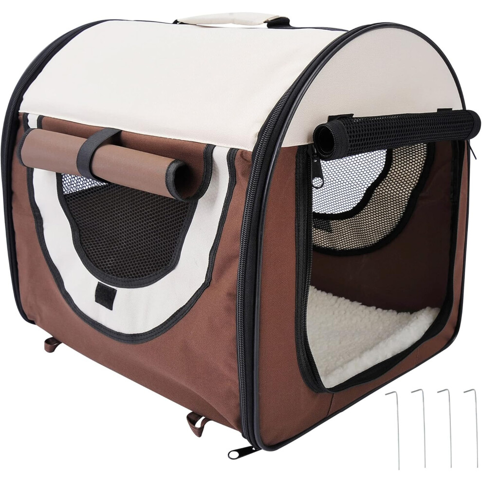 Pawhut Folding Fabric Soft Pet Crate Dog Cat Travel Carrier Cage Kennel House Brown 46L x 36W x 41H cm