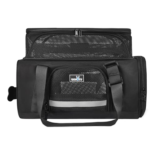 Wakytu Expandable Pet Carrier, Airline Approved Cat Carrier Travel Soft-Sided Dog Carrier with 5 Ventilated Mesh, Safety Lock Zipper, Washable Pet Mat and Pocket