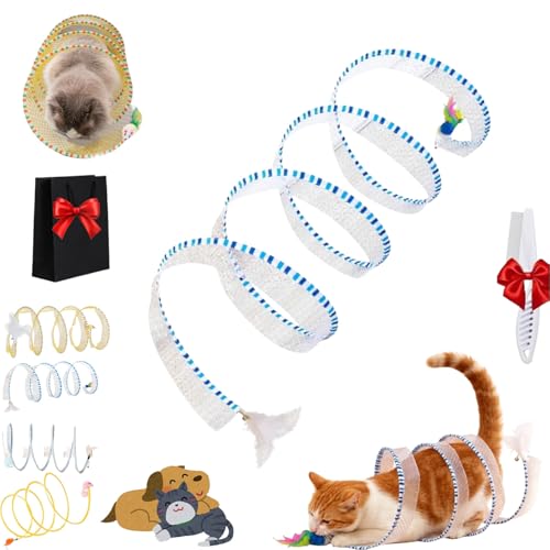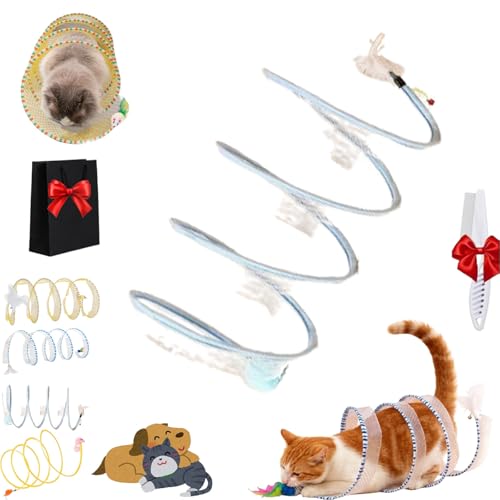 2026 New Self-Play Cat Hunting Spiral Tunnel Toy,Folded 10in Large Spring Spiral Toy With Feather And Mouse,S-Type Cat Tunnel Toy,SpiralCat Tunnel Toy,Cat Tunnels For Indoor Cats(#4)