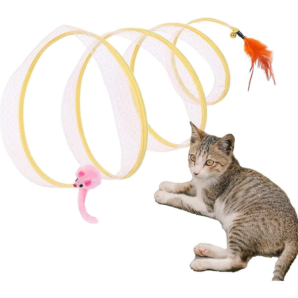 Self-Play Cat Hunting Spiral Tunnel Toy, Spiral Cat Tunnel Toy, S-Type Cat Tunnel Toy, Folded Cat Tunnel, Cat Tunnels for Indoor Cats with Toys Feather Mouse (A)