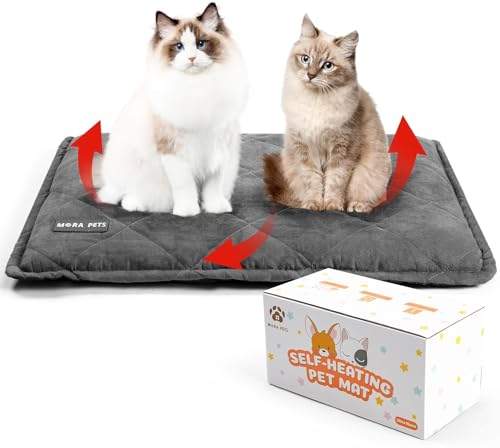 MORA PETS Self Heating Pet Bed for Puppies & Cats, Thicker Self Warming Cat Mat, Cozy Thermal Pet Pad with Washable Cover Heated Blanket for Crates & Beds, Kitten Mattress with Anti-Slip Base 61x46cm