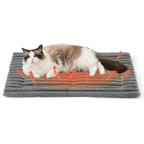 Bedsure Self Heating Cat Bed Mat - 61x46 cm Washable Fleece Warm Cat Blanket with Non Slip Bottom, Small Dog Crate Mattress for Puppy, Warming Pet Pad, Grey