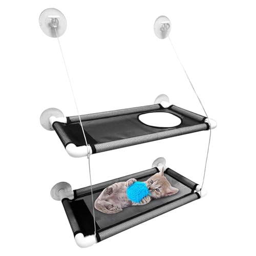 QYYZTQY Tree Houses Hammock Sucker Double Type Hanging Balcony Air Net Cat Stretcher Kitten Climbing Frame Window Seat Pet Accessories (Color Gray, Size : (Black Two floors) Warm