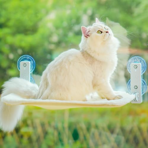 Cat Window Perch, Solid Metal Frame Cat Window Hammock with 4 Suction Cups for Large Cats & Kittens, Hanging Cat Resting Seat Cat Supplies for Sunbathing, Napping & Overlooking