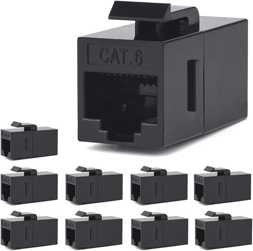 Cable Matters [UL Listed] 10-Pack 10Gbps Cat6 Keystone Coupler, RJ45 Keystone Jack Coupler/Ethernet Female to Female Keystone Jack in Black for Patch Panel, Wall Plate