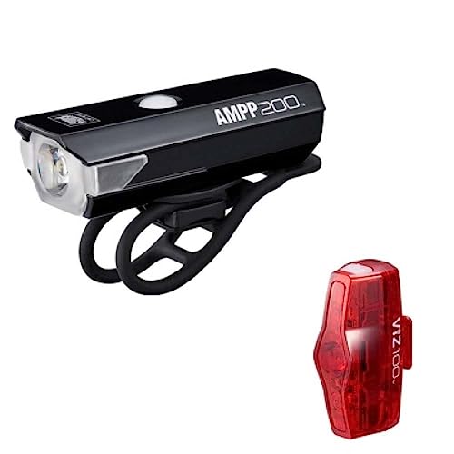CatEye AMPP 200 / VIZ 100 Bike Light Set: Front (200 Lumens) and Rear (100 Lumens) USB Rechargeable Lights