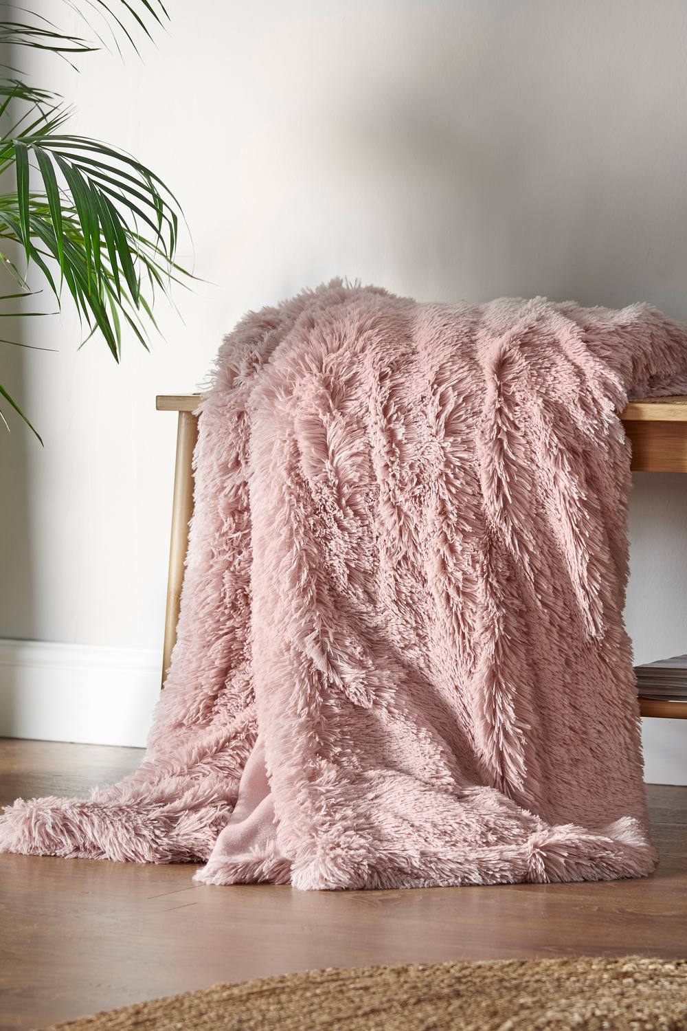 Catherine Lansfield Cuddly Deep Pile 150x200cm Blanket Throw Blush Pink