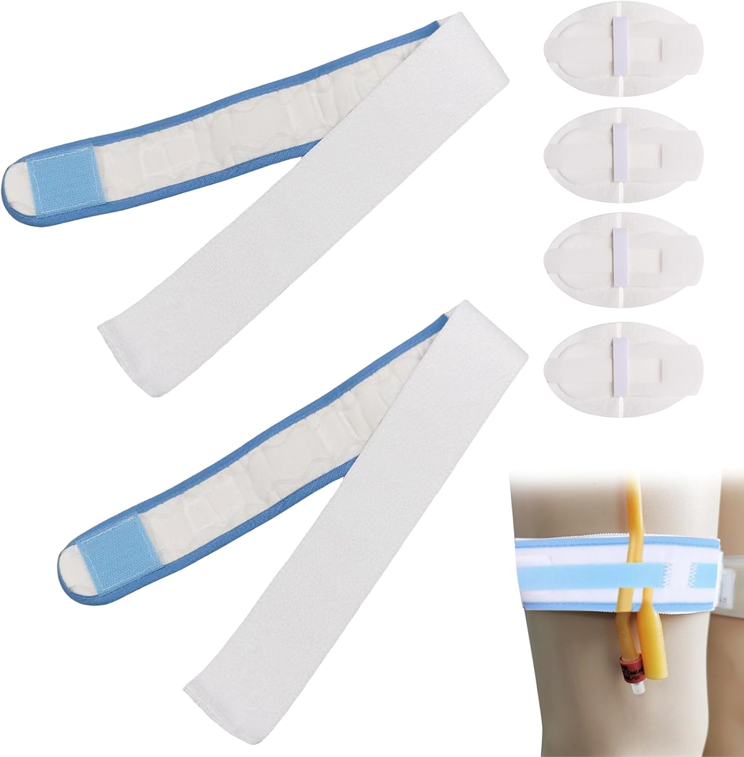 6 Pcs Catheter Leg Bag Holder Set, 2 anti Slip Sponge Straps 4 Breathable Infusi