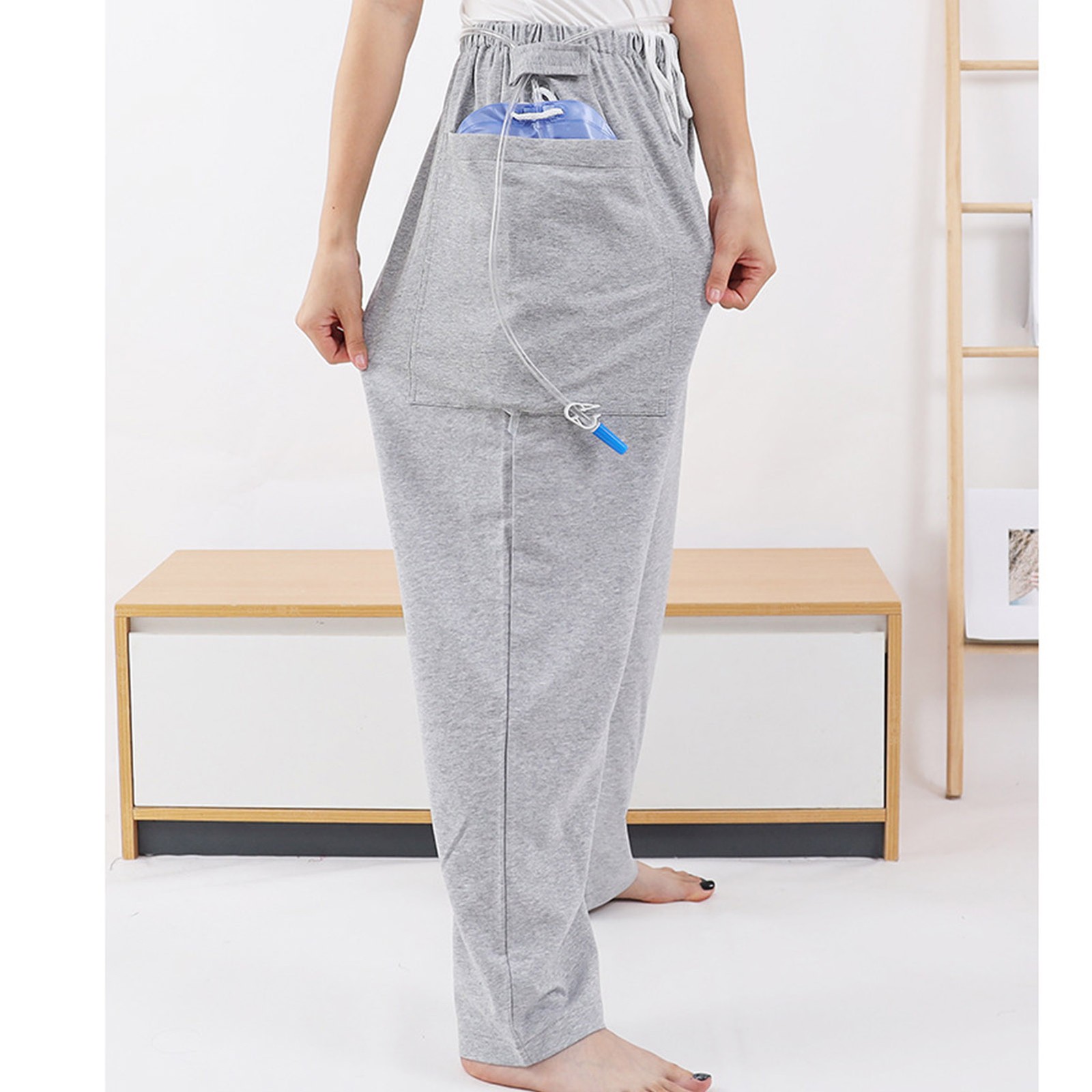 Catheter Leg Bag Pants Grey Urine Bag Pants Cotton Knit Alleviate Mobility